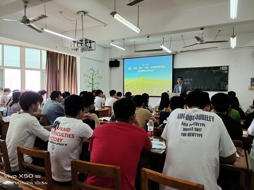 在竞知楼915教室,段善君博士为电信学院A1921班同学讲授《毛泽东思想和中国特色社会主义理论体系概论》课程,主要讲授了“五位一体”总体布局之建设现代化经济体系,着重阐释了党的十八届五中全会坚持以人民为中心的发展思想和创新、协调、绿色、开放、共享的新发展理念。