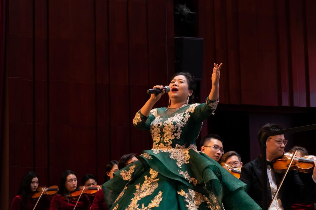董媛老师一曲《我爱你,中国》,柔和又铿锵的歌声,顿时让观众沉浸在对祖国的深情热爱中;戴利东老师《把一切献给党》描绘了一个无论是在战争年代还是和平时代,都无私把一切献给党的光辉的共产党员形象;李梦真老师为大家带来的《阳光路上》,将视野拉向改革开放时期,整个音乐厅立刻洋溢起幸福希望的氛围,好似走在阳光大道上;刘帅达老师的二胡独奏《洪湖主题随想曲》,带领大家在民乐和管弦乐的交织中领略中华民族的风骨神韵;王细梅老师的《党啊,亲爱的妈妈》将党比作母亲,歌颂党的崇高与伟大,唱出了九院师生的心声。