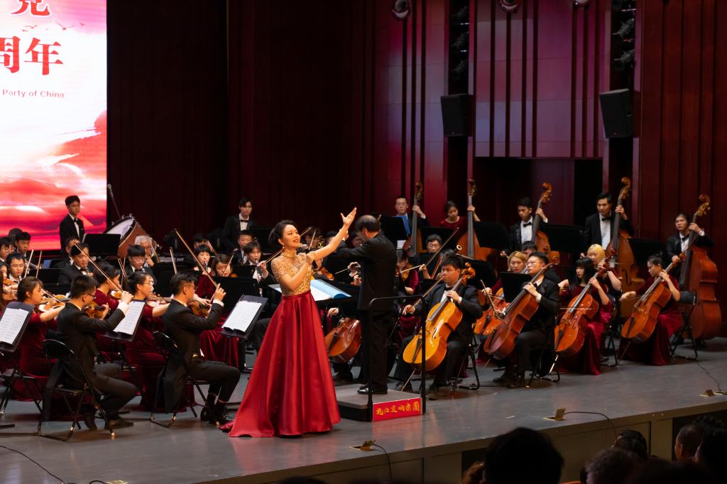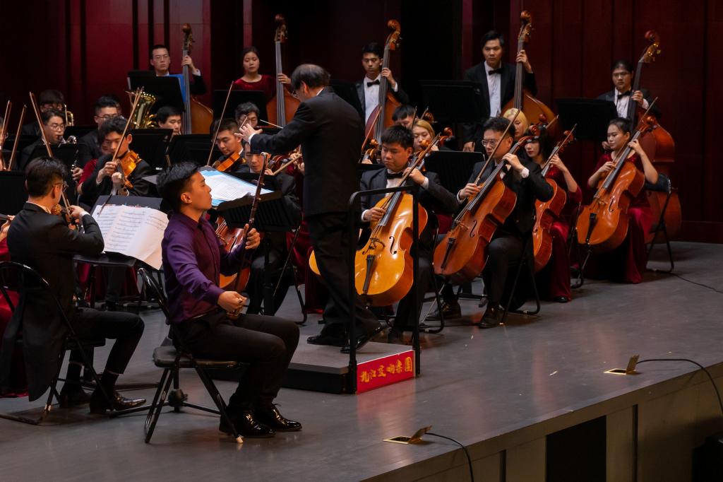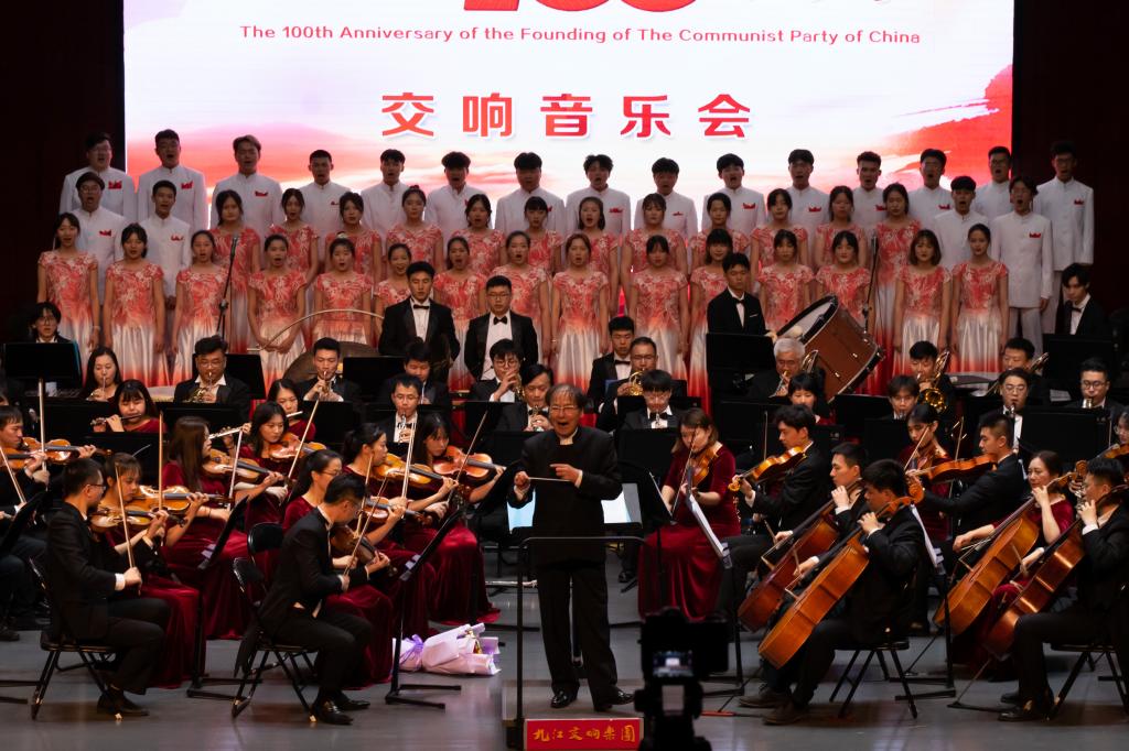 九江交响乐团生动演绎管弦乐曲《红色娘子军》组曲、《我的祖国》、《太阳颂》,歌颂了在中国共产党领导下的中国人民广阔的生活图景与坚韧昂扬的生命力量。