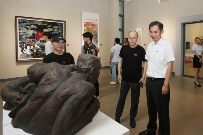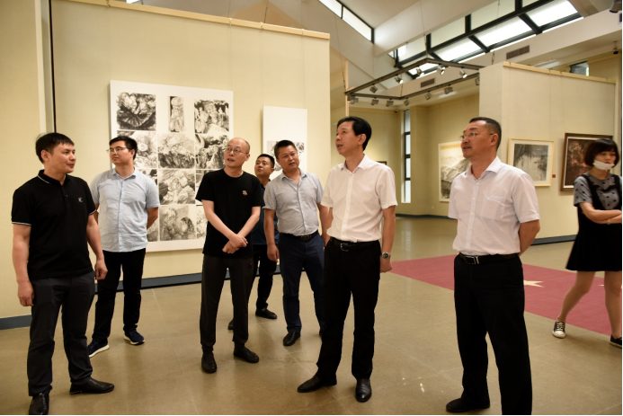 为庆祝中国共产党成立100周年,6月25日上午,由BB贝博艾弗森官方网站、九江市文化广电新闻出版旅游局共同主办,BB贝博艾弗森官方网站艺术学院、九江美术馆承办的《丹心向党——庆祝中国共产党成立100周年全市美术书法主题作品展》在九江美术馆正式拉开帷幕。本次展览为我市庆祝建党100周年系列展览活动之一,共展出作品约80件,涵盖了绘画、雕塑、书法、设计等不同艺术门类。从传统的艺术表现形式到贴近生活的设计作品,从不同方面、不同视角表现了我党光辉历程和伟大成就,展示了九江美术的新力量和新高度。九江市副市长李小平,贝博官网党委书记赵伟、党委副书记魏立平等领导先后前往观展。