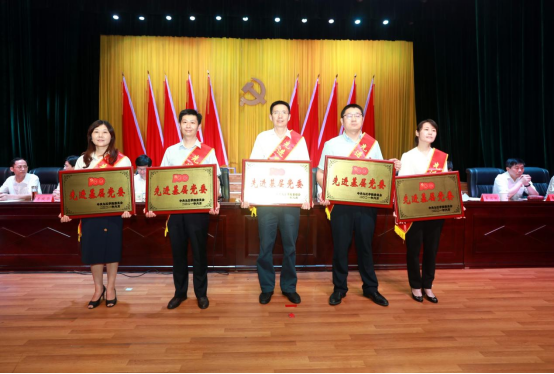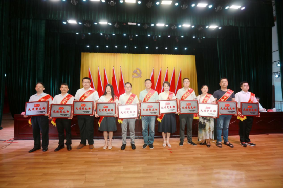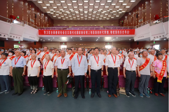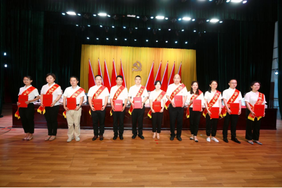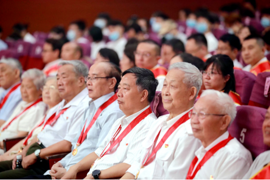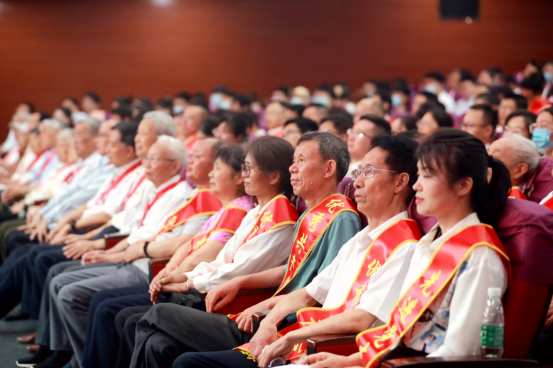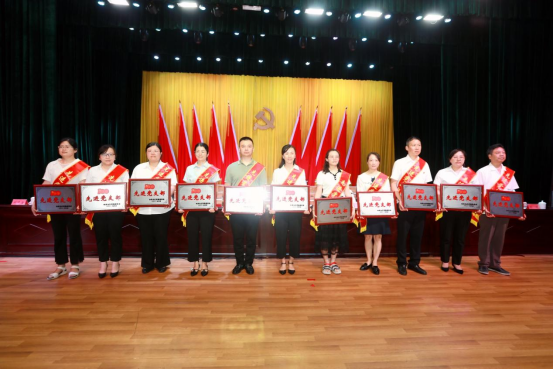 在热烈的掌声中,校领导为“光荣在党50年”代表颁发了纪念章,为优秀共产党员、优秀党务工作者代表颁发了荣誉证书,为先进基层党委、先进党支部代表颁发了奖牌。