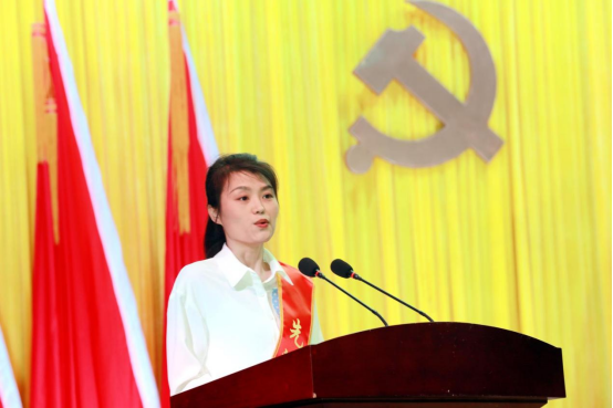 优秀学生党员代表程雨欣同学倾诉着对党的认识和心声,感谢学校和老师对自己的培养。她表示,将时刻不忘共产党员的责任,把无悔的青春全部献给党,努力达到全心全意为人民服务的崇高境界,坚定理想信念,对共产主义事业无限忠诚,立大志、明大德、成大才、担大任,努力成为堪当民族复兴大任的时代新人。