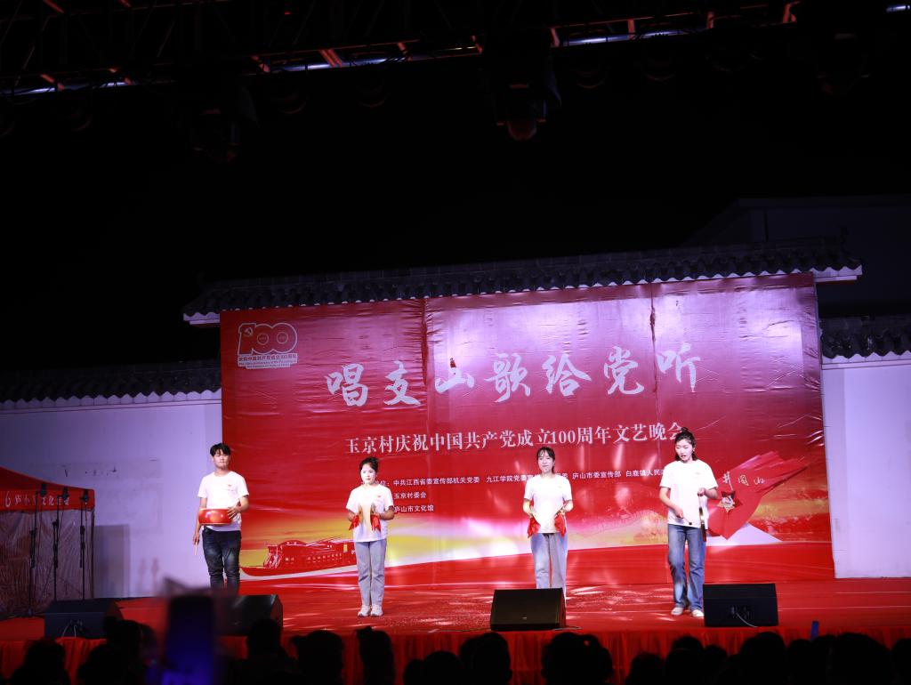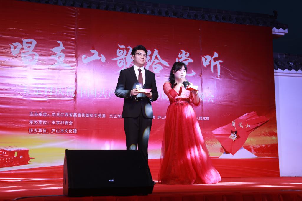 6月29日夜晚,庐山市玉京村新时代文明实践广场灯火璀璨,气氛喜庆热烈,由中共江西省委宣传部机关党委、贝博官网党委宣传部、校团委、庐山市委宣传部、白鹿人民政府共同主办,玉京村委会承办,庐山市文化馆协办的“唱支山歌给党听”庆祝中国共产党成立100周年文艺晚会正在举行中。省委宣传部二级巡视员、机关党委专职副书记罗远东,庐山管理局党委书记、庐山市委书记李甫勇,贝博官网党委副书记魏立平等与贝博官网师生代表以及玉京村村民一同观看了本场晚会。