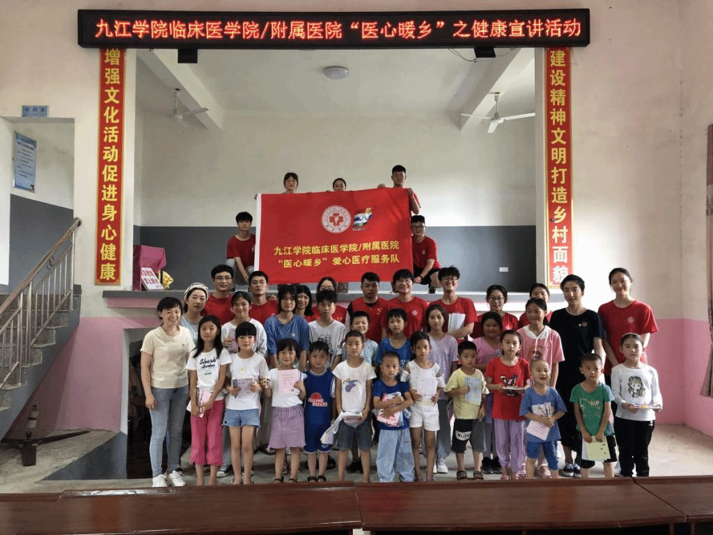 7月以来,附属医院组织义诊专家团队分别前往湖口县武山镇、浔阳区上善养老护理院、瑞昌市码头镇、庐山市牯岭镇、武警九江支队机动大队军营等处,开展免费送医、送药、送技能等医疗服务,服务群众1500余人次,广受好评。神经内科护理团队积极开展互联网+延伸护理居家服务,让患者在家就能享受到专业规范的护理服务。该院还组织学生“医心暖乡”爱心医疗服务队,前往扶贫点柴桑区涌泉乡枫树村,积极为村民们进行基础的医疗检查和健康评估,给家庭贫困儿童普及安全健康知识,举办文艺汇演,丰富村民们的精神文化。