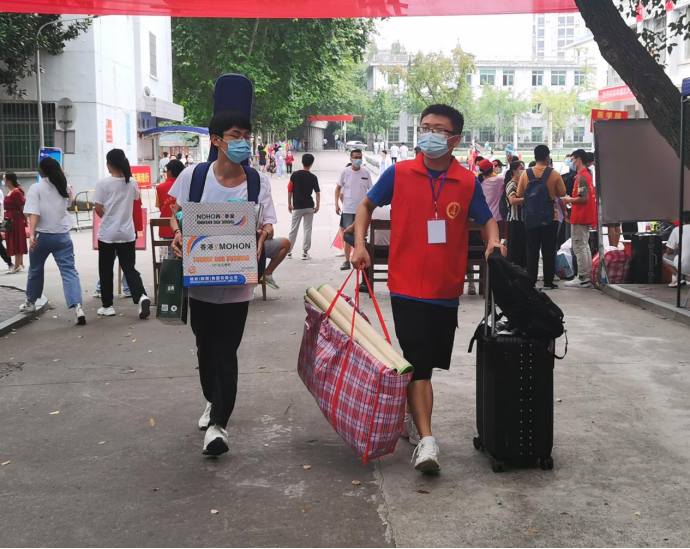 据了解,今年新生报到期间,根据疫情防控工作的需要,家长无法跟随新生进入宿舍区和教室区,但学校周到的安排、志愿者的热情帮助,让每一位新生都在踏入校门的那一刻就对学校产生了浓浓的归属感。