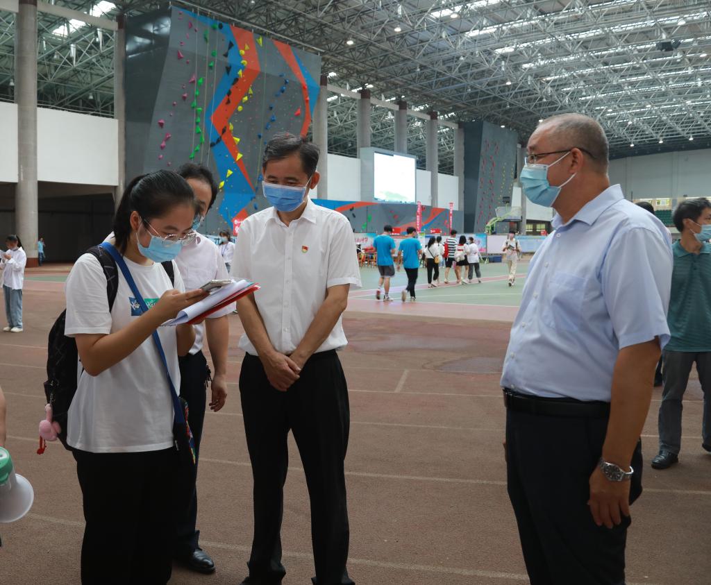 上午,校党委书记赵伟、校长陈小林、副校长严平、查振华等校领导来到新生报到现场,看望慰问2021级新生。在北区田径场,各二级学院的迎新工作正有条不紊的进行着。“家是哪里的?”“报到顺利吗?”“志愿工作辛苦吗?”......赵伟、陈小林一行走到师生们中间,与大家亲切交流,详细询问了新生报到、志愿服务等工作情况。