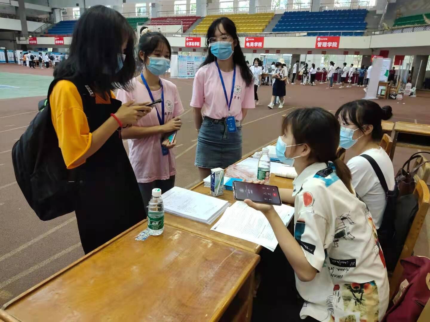 9月5日,贝博官网迎来了2021级新生。在北区田径馆迎新现场,“绿色通道”、“学生资助政策咨询处”工作人员早早地准备好了一切环节,确保贝博官网困难新生顺利入学。