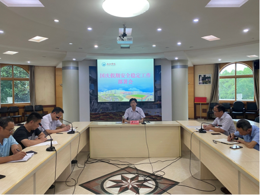 保卫处负责人在会上传达学习了省委教育工委、省教育厅关于加强国庆假期校园安全稳定工作的相关文件精神,学校安全稳定工作领导小组各成员单位负责人分别就分管领域的安全稳定工作进行了汇报与交流。