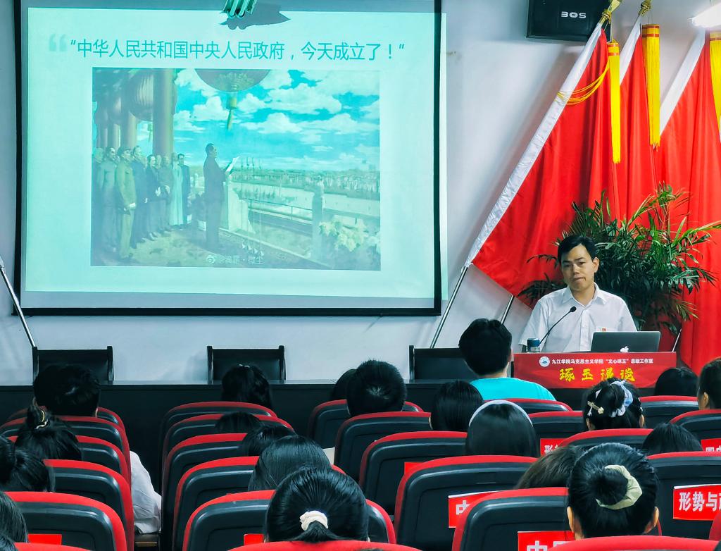 9月29日晚上,“文心琢玉”思政工作室在香远楼举办了以“亲爱的同学们,我们为什么要爱国——从孟晚舟回国谈起”为主题的第一期“琢玉漫谈”,全校2021级班级思政课代表和部分思政学习骨干近100名学生参加了漫谈。漫谈由“文心琢玉”思政工作室发起人、马克思主义学院副院长赵文博士担任主讲。