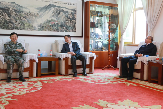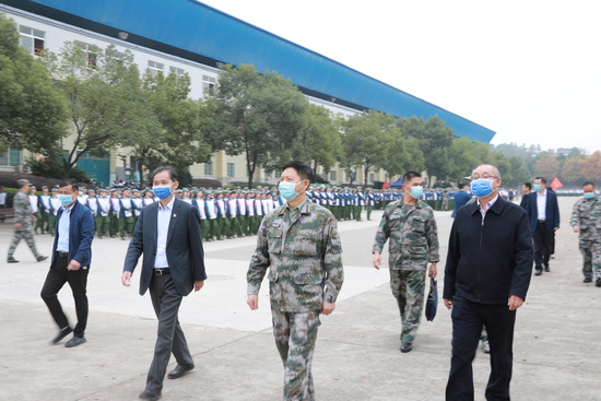 11月2日上午,九江军分区司令员丁庆顺来校看望正在军训的BB贝博艾弗森官方网站2021级新生,党委书记赵伟、校长陈小林热情接待了丁庆顺司令员一行。
