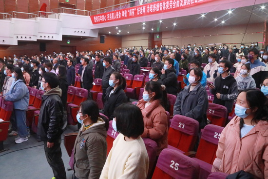 报告会开始前,与会人员以饱满的热情齐唱《我们走在大路上》和《团结就是力量》,从红色经典中感悟奋进力量。