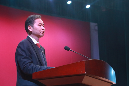 根据省委统一部署,12月7日下午,贝博官网在主校区大礼堂举行学习贯彻党的十九届六中全会精神宣讲报告会,省委宣讲团成员、省工信厅党组书记、厅长杨贵平作宣讲报告。校党委书记赵伟主持报告会。在家校领导、正处级领导干部及教师、学生代表300余人聆听了宣讲报告。