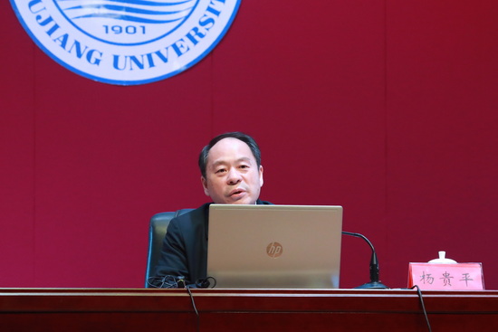 杨贵平指出,全会审议通过的《中共中央关于党的百年奋斗重大成就和历史经验的决议》,全面回顾了党的百年奋斗初心使命和重大成就,深刻揭示了百年大党过去“为什么能够成功”、将来“怎样才能继续成功”的核心密码;突出中国特色社会主义新时代这个重点,有利于引导全党进一步坚定信心,聚焦我们正在做的事情,以更加昂扬的姿态迈进新征程、建功新时代。《决议》从五个方面总结的党百年奋斗的历史意义贯穿了中国共产党百年奋斗的历史逻辑、理论逻辑和实践逻辑;概括了具有根本性和长远指导意义的十条历史经验,这些经验是我们党长期积累的宝贵精神财富,更是我们党引领中国未来的科学指引。