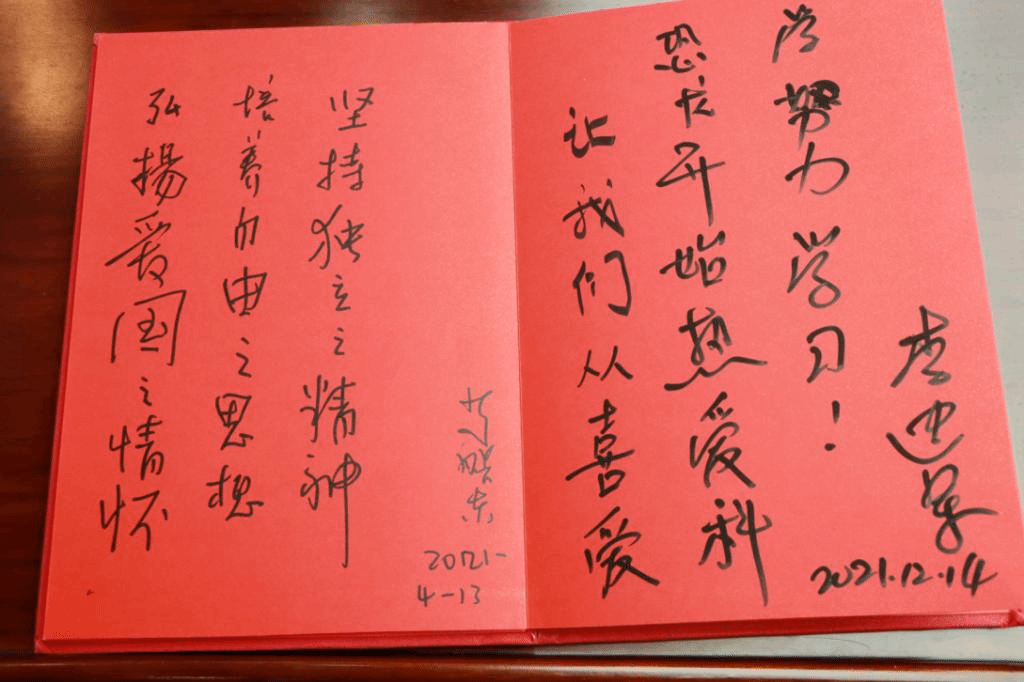 讲座结束后,李建军为濂溪讲坛题辞:“让我们从喜爱恐龙开始热爱科学,努力学习!”