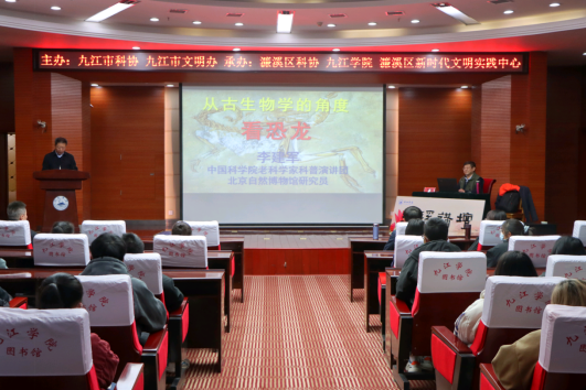 12月14日下午,北京自然博物馆研究员李建军博士应邀做客贝博官网第190期濂溪讲坛。副校长严平出席并主持讲座。贝博官网党委委员、纪委书记李广欣,校党委委员、党委宣传部部长冯健,相关部门负责人以及200余名师生代表到场聆听了讲座。