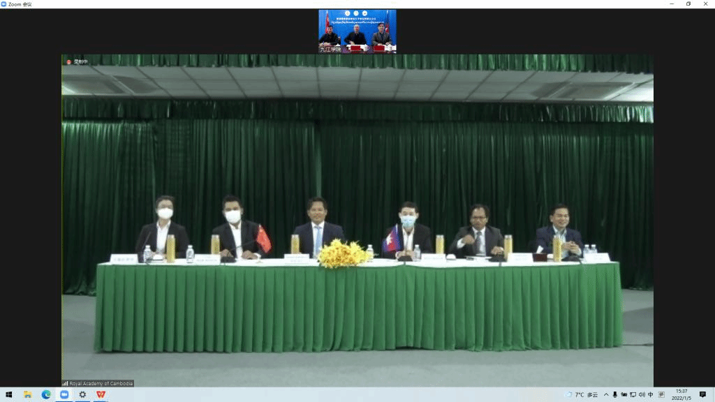 1月5日下午,柬埔寨皇家科学院孔子学院2021年理事会会议通过视频会议举行。校长陈小林,副校长杨耀防,柬埔寨皇家科学院院长Sok Touch(宋独)、秘书长Yang Peou(杨博)等参加了会议。会议由杨耀防主持。
