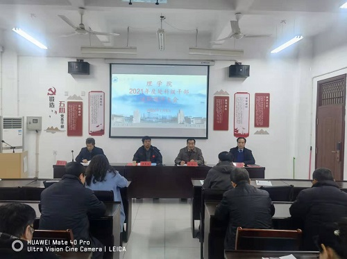 1月4日,理学院在文友楼312会议室召开2021年度处级干部述职测评大会。副校长陈春生,校党委委员、统战部长刘遵海,统战部相关干部和理学院全体教职工参加会议。