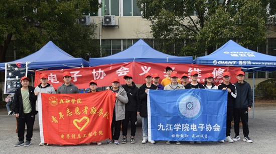 电子信息工程学院的志愿者发挥自己专业特长,深入社区为居民免费检查和维修家用小家电。