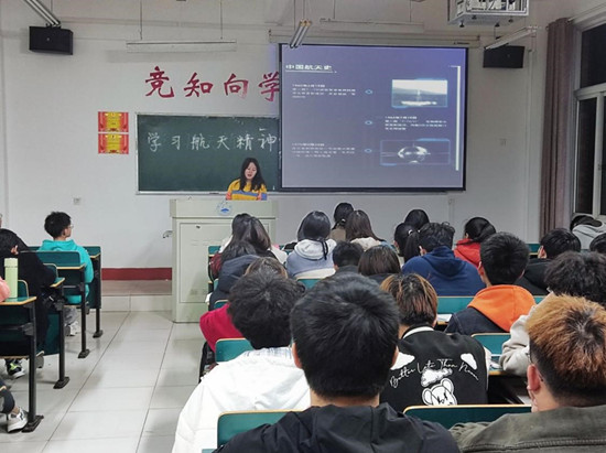 以“弘扬航天精神,拥抱星辰大海”为主题,各二级学院纷纷召开主题班会,通过了解中国载人航天之路,结合神州十三号的成功发射,学习载人航天精神的内涵,教育同学们敢于有梦、勇于追梦、勤于圆梦。