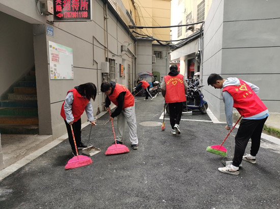 体育学院的志愿者走进社区,结合文明城市创建开展了捡拾垃圾、清除小广告、摆放车辆、擦广告牌等工作。