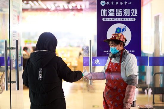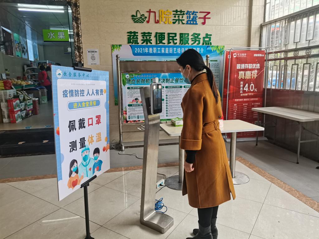 为保障校园安全,后勤处饮食服务中心深入周密部署“舌尖”安全。各食堂坚持消毒测温,分流进出口人员,张贴就餐提示,提倡打包带走方式,防止可能存在的病毒交叉传染。
