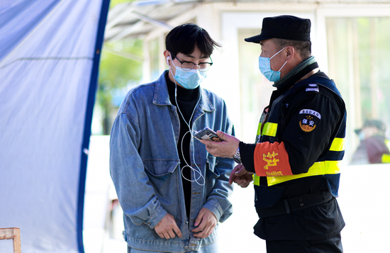 图书馆严管严控进出人员,积极落实戴口罩、测体温、查赣通码(行程码),安保人员和青年志愿者轮班轮流坚守图书馆大门岗位,筑牢图书馆防疫安全线。