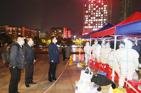 此次核酸采样工作时间紧、覆盖范围大,队员状态时刻牵动着医院领导的心,深夜,附属医院在家班子成员带领医院党院办、医务科、护理部等部门负责人分别前往各岗点,察看了临时核酸采样点的环境布局,详细了解核酸采样进展、人员储备和后勤补给等情况。他们对队员们不辞辛劳的付出表示感谢,勉励他们弘扬伟大抗疫精神,继续发扬舍小家顾大家,不怕吃苦敢打硬仗的工作作风,保质保量地完成本次任务,并叮嘱队员们一定要做好个人防护措施,确保自身安全和工作顺利开展。