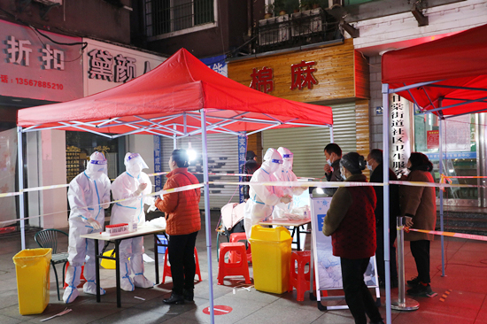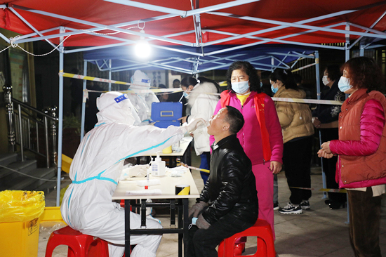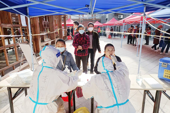 到达核酸采样点后,大家迅速投入“战斗”,在社区人员、志愿者们的协助下,群众排队依次登记、全程佩戴口罩,队员们以责任、担当和坚定的执行力,严格按照防疫流程依规采集,采集现场秩序井然。对老年、幼儿等有需要帮助的,队员们有的蹲下身体采集,有的走出操作台到群众身前采集,小小举动,温暖着在场群众。对于有些卧病在床不方便到现场的老人,还主动上门进行采样。队员们的工作受到了各社区群众一致好评。