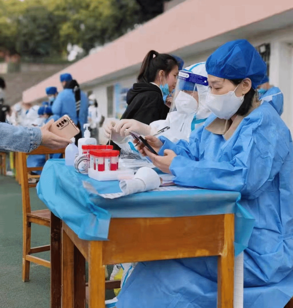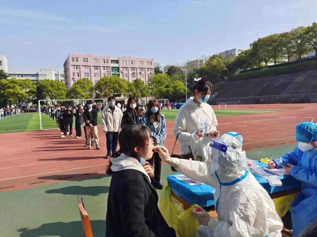 3月15日—3月24日,贝博官网先后在主校区南区田径场、学校三食堂门口和浔东校区图书馆广场设立了三个采集点,投入全体医务人员41名,积极展开全校第一轮全员新冠病毒核酸检测。