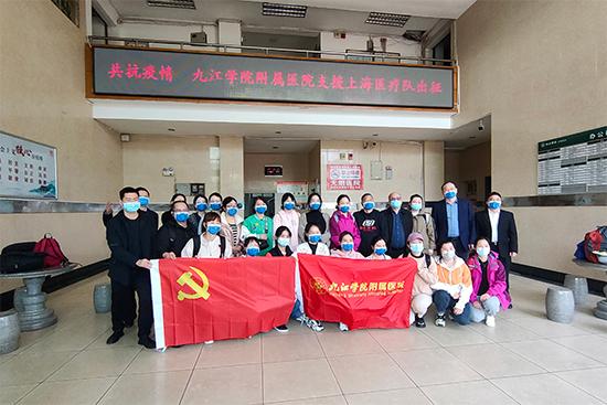 4月3日上午,按照省市卫健委统一部署,BB贝博艾弗森官方网站附属医院21名医护人员迅速完成集结,经南昌完成调配之后,同各地队员一起赶赴上海方舱医院执行医疗援助任务。队伍临行前,医院行政后勤部门为队伍准备了工作和生活物资,附属医院党政负责人等为队伍送行并进行简短动员。