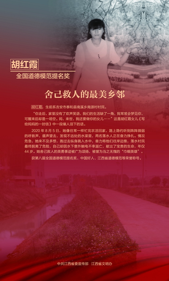 胡红霞,女,汉族,1976年10月生,群众,生前系江西省泰和县南溪乡南源村村民。
