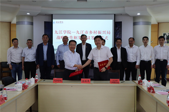 4月27日,贝博官网与九江市乡村振兴局战略框架合作协议签约仪式在行政楼一号会议室举行。九江市政府副市长熊晋喜,市政府副秘书长孙勇军,市乡村振兴局党组书记、局长朱云,贝博官网党委书记赵伟、校长陈小林等出席了签约仪式。签约仪式由副校长严平主持。
