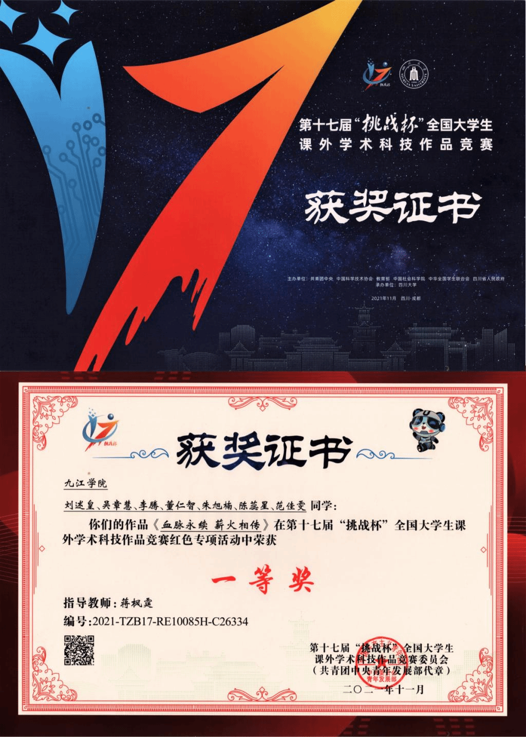 由共青团中央、中国科协、教育部、中国社会科学院、全国学联共同主办第十七届“挑战杯”全国大学生学术科技作品竞赛红色专项线下终审在四川大学举行,全国上千所大学推报的11184项作品报名展开激烈竞逐,共有500多件作品进入决赛。贝博官网教育学院蒋枫霆老师指导的《血脉永续,薪火相传》项目荣获全国一等奖,外国语学院王燕、王少斌、李杰老师指导《深耕红色文脉,讲好八一故事》项目荣获全国三等奖。这是贝博官网在“挑战杯”竞赛中的历史性突破。