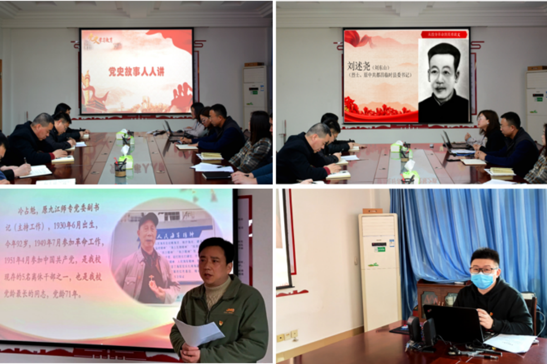 党史故事人人讲。支部每季度召开党员大会,开展政治理论集中学习,安排党员讲党史故事、谈学习体会,做到每位党员一年至少发言一次。支部党员陈娟讲述自己外曾祖父刘述尧的革命故事;家乡在赣州信丰的支部党员张许林,讲述中央红军长征第一仗——百石战斗的经过和洪超的故事;支部党员、离退休人员工作处干部樊利斌讲述自己身边的榜样——离退休老党员的感人事迹;祖籍山东青岛的支部党员尹伊君,与大家分享青岛早期革命者赵鸿祥的故事……每一次讲述、每一个故事,都使大家在思想上经受一次洗礼,再次唤醒入党初心,激发使命担当。