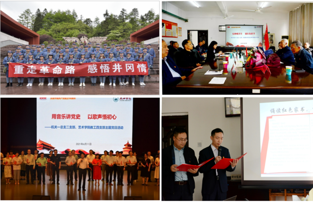 开展红色教育实践活动。党史学习教育以来,该支部开展了以“重走红军路,感悟井冈情”为主题的教育实践活动;开展了“用音乐讲党史,以歌声悟初心”“忆峥嵘岁月,诵红色家书”等主题鲜明的党日活动,党员们通过实践教学活动,回顾党的历史、感悟革命精神。