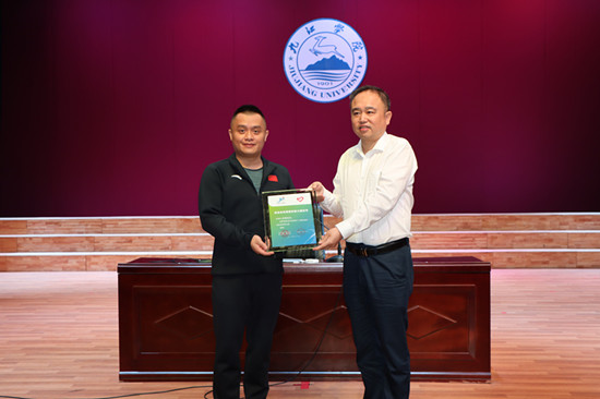 刚刚受聘为“省运会志愿者形象大使”的雅典奥运会男子3米板冠军彭勃在会上与大家做了分享。作为江西走出的奥运冠军,他回顾了自己的跳水训练经历,分享了在奥运会夺冠的精彩瞬间,以及自己作为“大龄”运动员新学难度动作备战北京奥运会却因伤退出的心路历程。他寄语同学们学习和生活中要坚持自己的热爱,不轻言放弃,朝着自己的理想不断奋斗。
