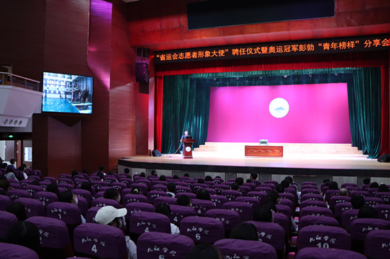 5月21日上午,“省运会志愿者形象大使”聘任仪式暨奥运冠军彭勃“青年榜样”分享会在贝博官网大礼堂举行。