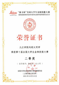 学院积极鼓励学生参加各类学科竞赛,荣获2021年中国大学生工程实践与创新能力大赛银奖1项;第六届江西省大学生工程训练综合能力竞赛金奖1项、银奖2项、铜奖1项;中国大学生材料热处理创新创业赛三等奖1项;第五届全国大学生焊接创新大赛二等奖2项、三等奖1项;2021年江西省先进成图大赛二等奖1项;获得第十届全国大学生金相技能大赛二等奖1项、3等奖1项;第五届江西省大学生金相技能大赛一等奖1项、3等奖5项。