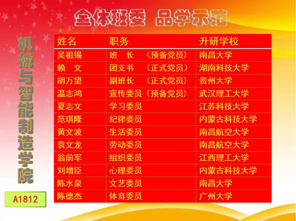 学院不断加强学风建设,举办考研动员会、经验交流会、复试答疑会和调剂指导会等活动,不断提升学生们的考研积极性和考研成功率。2021年学院考研亮点纷呈,A1812班45名学生中录取人数为23人,考研录取率超过50%,11名班委全部考上研究生,为BB贝博艾弗森官方网站“最牛考研班委”;A1811班录取人数为22人,不少同学被武汉理工大学、东华大学等国内工科名校录取;A1813班502寝室的6名学生全部录取,为BB贝博艾弗森官方网站“最牛考研寝室”。