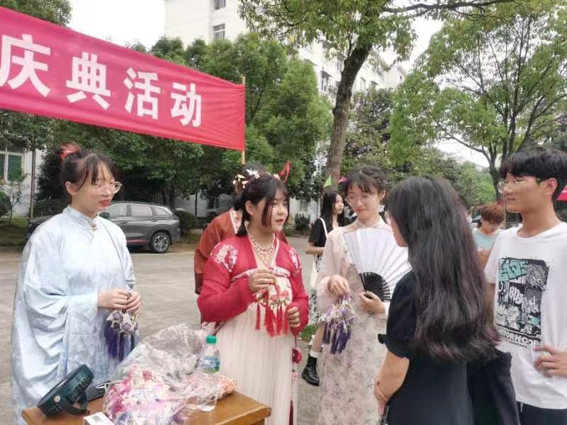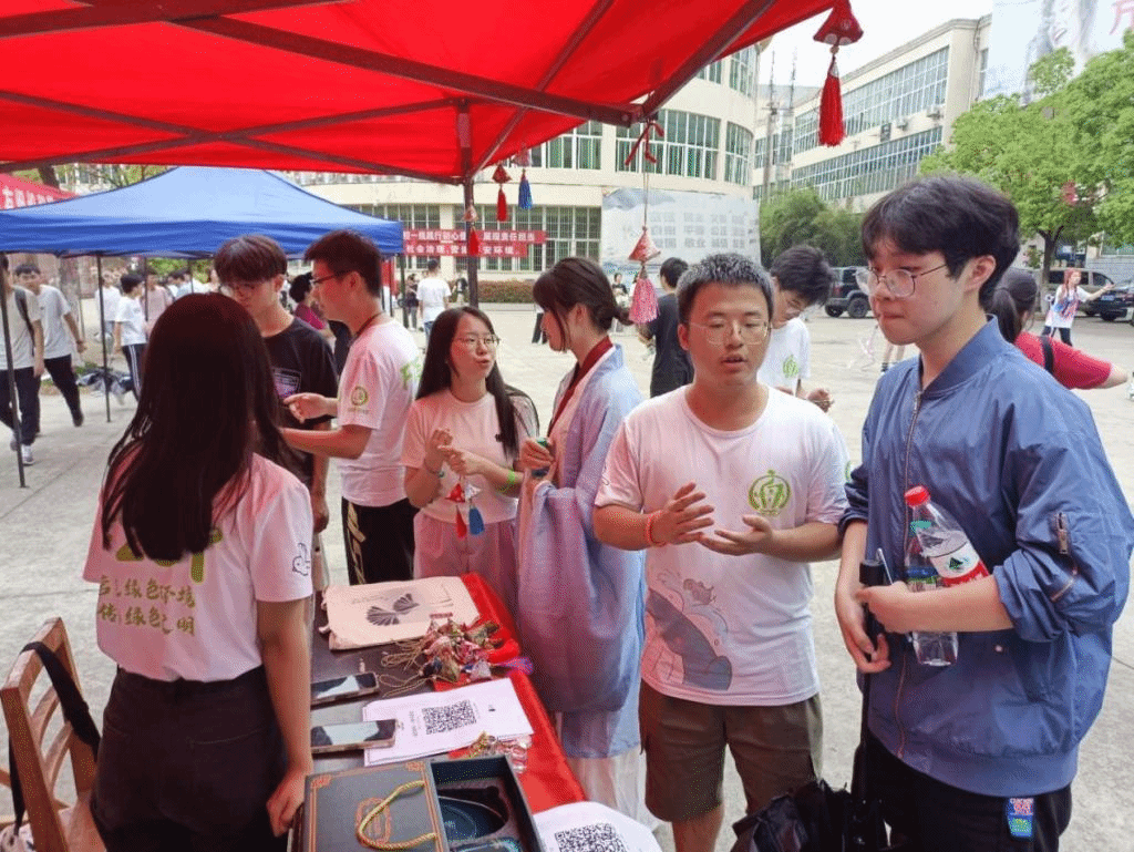 科普知识引新风。在三食堂广场,知识美食文化协会会员们准备了琳琅满目的小香囊,供同学们欣赏并科普藿香、艾草、金银花、紫苏等中草药的医药知识,推广传统中医药文化。大家围在一起,畅所欲言,聊一聊养生小话题,说一说端午小习俗,将养生元素与时代风尚完美融合,将国潮养生风带入校园。