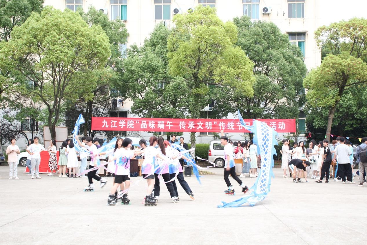 活动创新展新姿。活动现场,轮滑协会结合自身特色,手持彩带,脚踏速轮,在操场上舞动着,旋转着,飞驰着,打破了以往传统龙舟形象,以飞扬青春,创新精神弘扬文化特色。濂溪诗社和南山国学社的投壶、斗草、诗词接龙等游戏更是让同学们化身文人雅士,一览古人风采,感受端午节的文化内涵,激发大家对传统文化的归属感和关注度,营造校园文明、温馨、和谐的节日氛围。