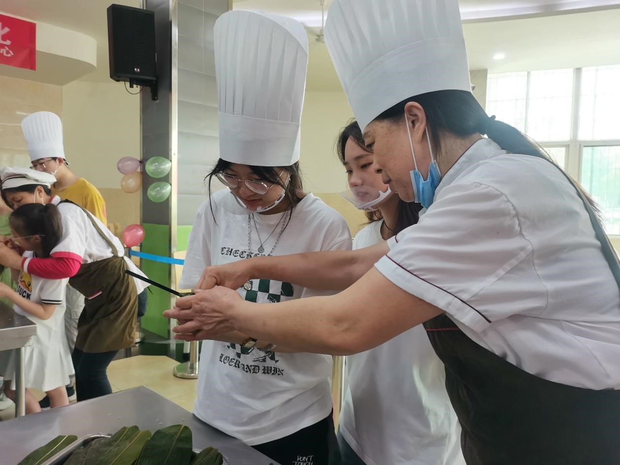 寓教于乐新体验。6月1日下午,在学生三食堂,团委和饮食服务中心联合举办了包粽子体验活动,同学们参与体验包粽,品尝鲜棕,以食慰藉,暖解乡愁。活动现场,饮食服务中心的阿姨们为大家介绍如何包制粽子,从泡粽叶、泡米、调制馅料到制作出成品作了介绍展示。讲解结束后,大家围在一起,捋粽叶、做漏斗状、填糯米、压紧实、封口、扎捆,沉浸式体验包粽子的节日传统。香糯可口的粽子让大家温暖在心,从寓教于乐的快乐中体验不一般的民俗传统,领悟文化内涵里的满满正能量。