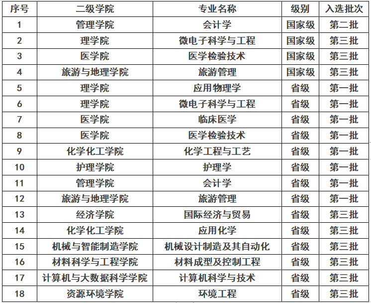 近日,教育部办公厅下发《关于公布2021年度国家级和省级一流本科专业建设点名单的通知》(教高厅函〔2022〕14号),贝博官网微电子科学与工程、医学检验技术、旅游管理3个专业获批国家级一流本科专业建设点。这是继去年学校实现国家级一流本科专业建设点突破后,学校专业建设工作再次获得的突破性成功。同时,学校还有6个专业获批省级一流本科专业建设点。至此,贝博官网入选国家级一流本科专业建设点4个,省级一流本科专业建设点14个。
