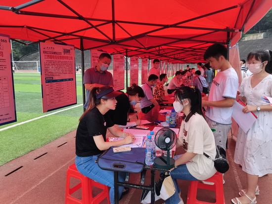 为严格落实防疫要求,本次招聘会到场人员均测体温,出示健康码、行程码,招聘会现场还设置了医疗服务点。