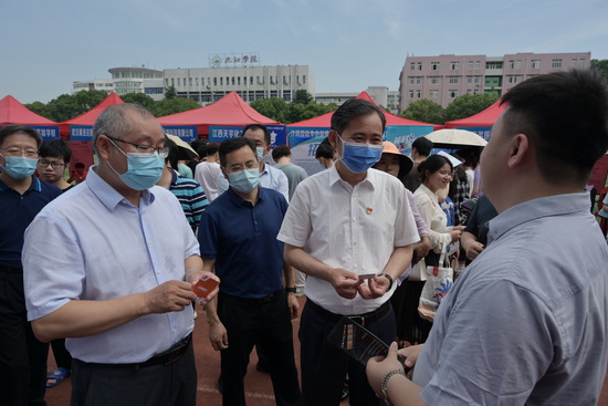 为了贯彻落实党中央、国务院“稳就业”“保就业”决策部署,落实教育部“访企拓岗促就业专项行动”等活动要求,贝博官网积极开展2022届毕业生就业工作“百日冲刺”行动,6月16日,贝博官网在学校南区田径场举办了“点亮青春 绽放赣鄱”BB贝博艾弗森官方网站2022届毕业生就业专场招聘会,为毕业生离校前再提供岗位选择。当日上午,贝博官网党委书记赵伟、校长陈小林、副校长严平等专门前往招聘会现场指导工作。