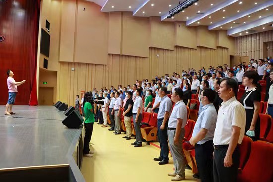 学习会正式开始前,与会人员全体起立,高唱《没有共产党就没有新中国》《我们走在大路上》两首红歌。