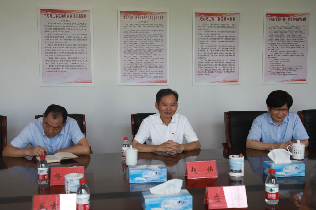 为进一步加强校地合作,探讨建立校地合作的有效模式和长效机制,推动九江市与BB贝博艾弗森官方网站优势互补、共同发展,8月4日上午,九江市委常委、常务副市长应炯就人才智库建设等工作来贝博官网进行调研。校党委书记赵伟热情接待应炯一行,并主持召开调研座谈会。