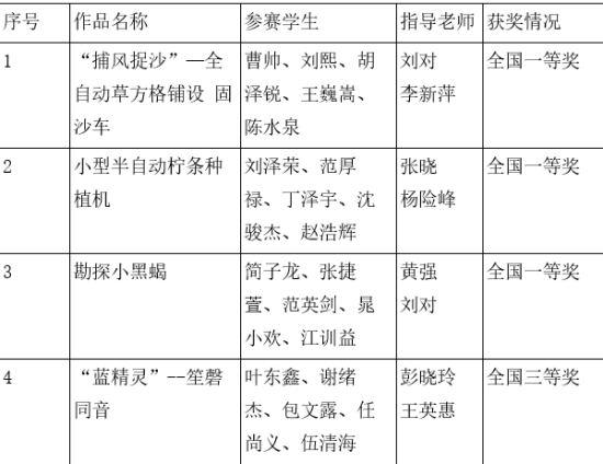 全国大学生机械创新设计大赛是教育部认可的57项全国性大学生竞赛项目之一,是国内最具影响力、培养学生工程实践能力和综合素质效果显著的大学生竞赛项目之一。全国的123所高校的200项作品入围决赛,全国50多位知名教授级专家参与大赛评审。贝博官网学子获得了全国一等奖3项、三等奖1项,获一等奖数量仅次于西安交通大学、武汉理工大学、东北大学、上海交通大学、浙江工业大学,居全国高校排名第六,这是此项赛事以来贝博官网学子取得的最好成绩。