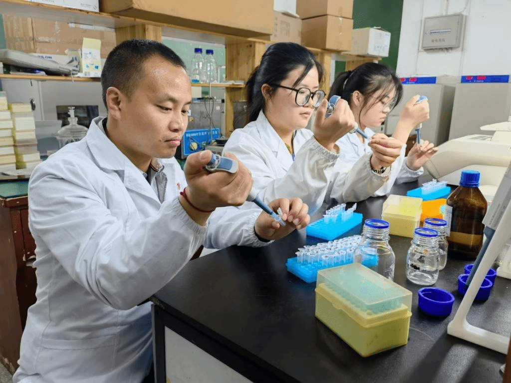 作为九江市瑞昌松针土鸡科技小院负责人,何刚与研究团队孙启彪博士等一道,多次赴养殖基地寻找攻坚痛点和突破点,开展技术指导与项目合作。两年来,他带领研究团队在发酵饲料生产等方面投入大量精力,逐步优化了工艺条件,并结合养殖基地薄弱环节为有关人员开展技术培训。