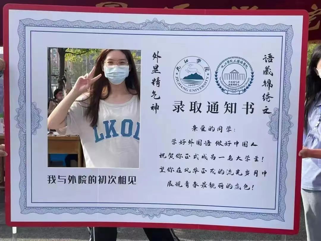 在党的二十大来临之际,为更好地传承红色基因、赓续红色血脉,外国语学院、护理学院用心安排布置了“青春心向党”合影镂空墙,将党史学习打造成一份“开学见面礼”,让新同学们与红色教育“一见倾心”,充实了校园生活。此外,“我与外院的初次相遇”录取通知书合影展板格外醒目,惹人注意,营造了浓厚的迎新氛围。